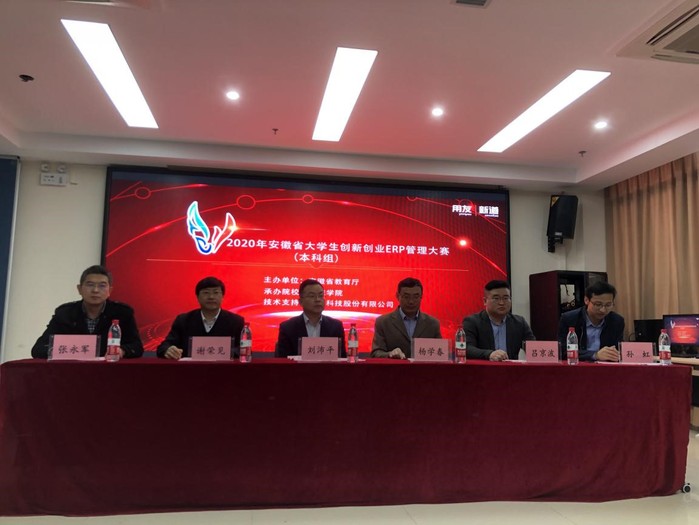 11月7日,由安徽省教育廳主辦,合肥學院承辦的2020年安徽省大學生創新創業ERP管理大賽在我校舉辦。安徽省大學生創新創業教育辦公室主任、合肥學院大學生創新創業教育中心主任劉沛平,合肥學院經濟與管理學院黨總支書記楊學春、副書記張永軍,安徽工程大學經濟管理學院院長謝榮見,新道科技股份有限公司安徽區總經理呂京波等出席大賽開幕式,開幕式由大學生創新創業教育中心副主任孫虹主持。