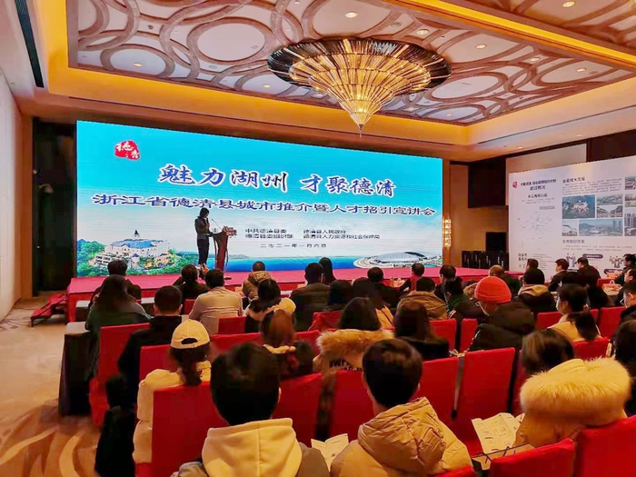推介會上,黃建豐從歷史地理、文化優(yōu)勢、產(chǎn)業(yè)優(yōu)勢等方面簡要介紹了德清縣的基本情況。蔣斌從實習就業(yè)、安家落戶、創(chuàng)新創(chuàng)業(yè)等方面詳細介紹了大學生來德清就業(yè)創(chuàng)業(yè)的政策待遇和發(fā)展前景等等。