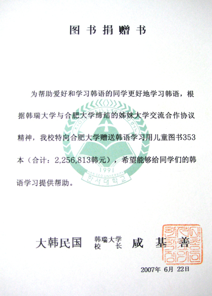 6月27日,韓國韓瑞大學向我院贈送韓語學習用兒童圖書353冊,價值人民幣2萬余元。這批韓語圖書為我院韓語專業(yè)的同學提供了一份珍貴的學習資料。