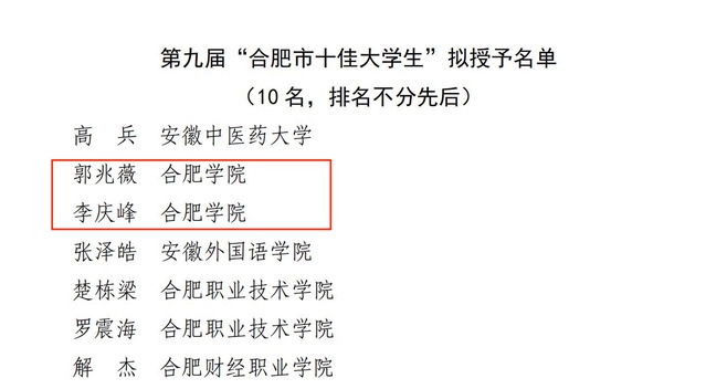 我校多名學(xué)子榮獲“合肥市十佳大學(xué)生”“合肥市最美大學(xué)生”稱號