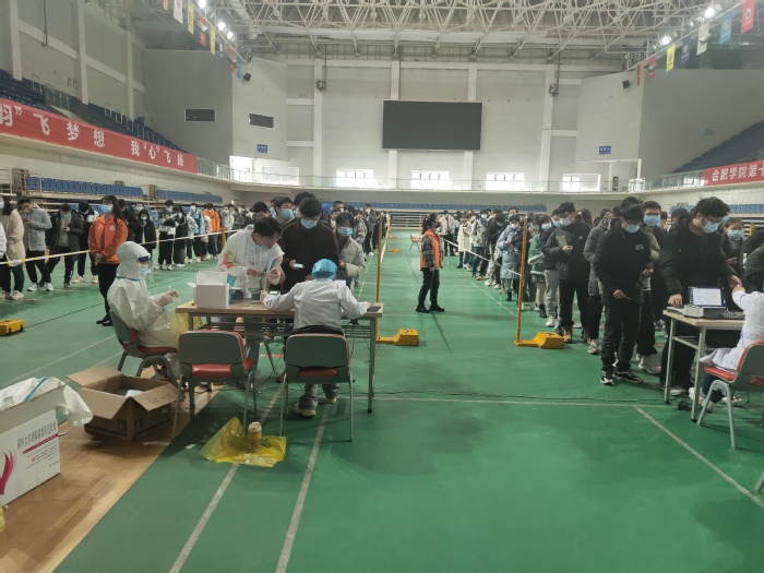 12月23日上午,學校在校體育館主館啟動核酸檢測服務。醫護人員、學生志愿者分工協作,組織參加核酸檢測的學生有序間隔排隊、順利采集樣本,全程快速高效,為1668位考研學子提供了高質量的服務。