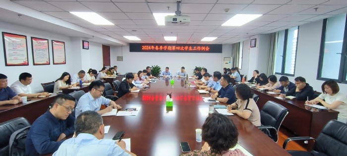 為系統推進各項學生工作,5月27日下午,學校在八樓會議室召開春季學期第四次學生工作例會。黨委委員、副校長白義香出席,相關職能部門負責人、各二級學院黨委書記、副書記、學工辦負責人、各物業公司負責人參會,會議由學生處處長丁增云主持。