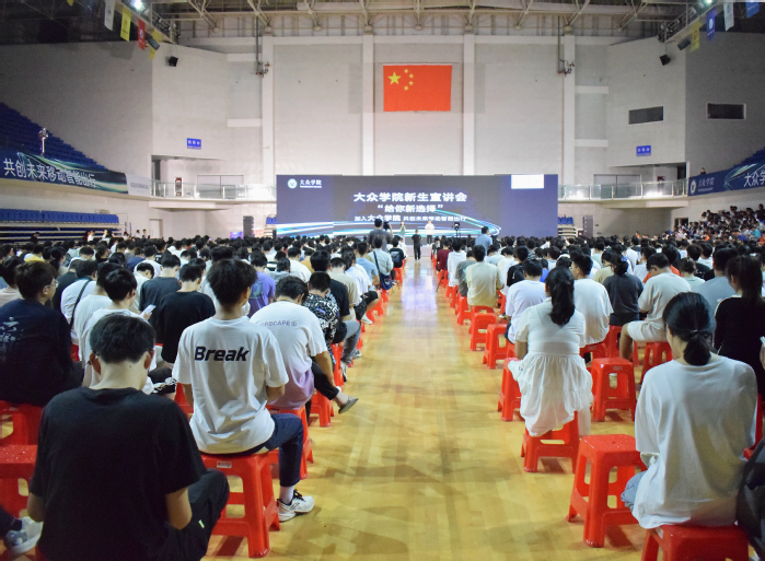 9月14日晚,合肥學院大眾學院在二期體育館舉辦2023級招生選拔宣講會,吸引了1600多名理工類專業新生到場聆聽。