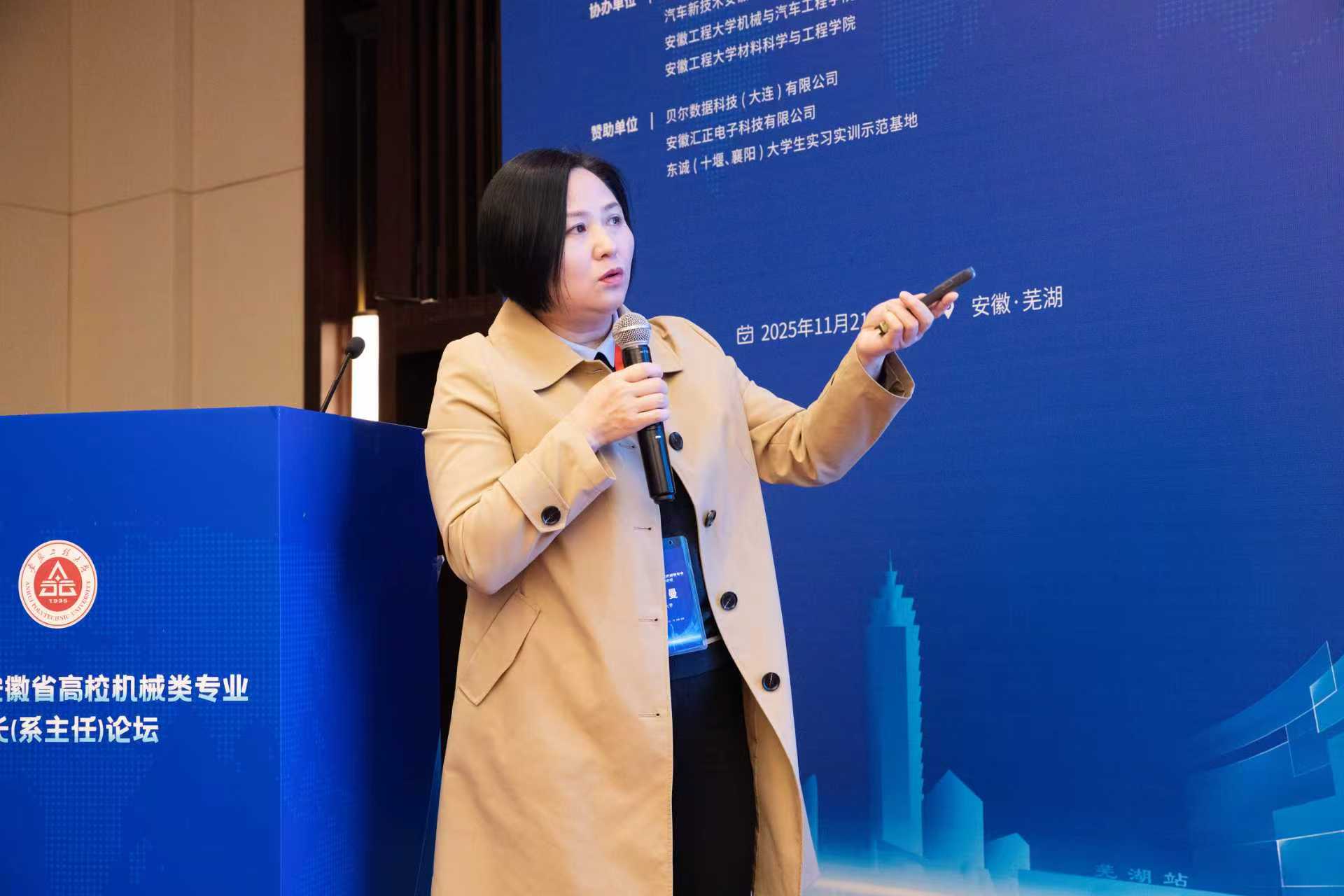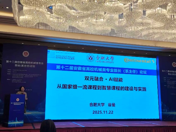 論壇期間,谷曼教授以《雙元融合·AI賦能—從國家級一流課程到智慧課程的建設與實踐》為題作主旨報告,獲得與會嘉賓廣泛關注。報告中,谷曼教授簡要概述了合肥大學的建校歷程與辦學定位,系統介紹了先進制造工程學院的學科布局、專業設置及發展特色;重點分享了學院中德合作雙元制專業建設的探索歷程、核心舉措與實踐成果,深入解析了國家級一流課程的建設思路、關鍵環節與質量把控經驗,并結合AI技術應用前景,闡述了從一流課程向智慧課程升級的路徑設計與實施成效。