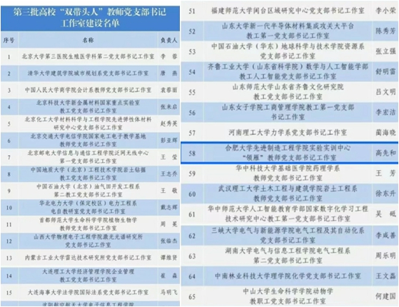 近日,教育部公布了第三批高校“雙帶頭人”教師黨支部書記工作室建設名單,合肥大學先進制造工程學院實驗實訓中心黨支部高先和書記“領雁”工作室成功入選,這是學校首次入選全國高校“雙帶頭人”教師黨支部書記工作室。 此次教育部公示的第三批高校“雙帶頭人”教師黨支部書記工作室遴選結果,經省級黨委教育工作部門推薦、專家評審、教育部黨的建設和全面從嚴治黨工作領導小組成員單位集中審議,從全國各高校共遴選產生100個高校“雙帶頭人”教師黨支部書記工作室,我省有3所高校教師黨支部書記工作室入選。合肥大學先進制造工程學院實驗實訓中心黨支部位列其中。 合肥大學先進制造工程學院實驗實訓中心黨支部堅持以習近平新時代中國特色社會主義思想為指導,深入學習宣傳貫徹落實黨的二十大精神,在支部書記“雙帶頭人”高先和的榜樣帶領下,支部取得了一系列優秀成果,涌現出一批優秀黨員教師,帶領學生成才成長。 實驗實訓中心黨支部以“黨建+”育人為重點,堅持黨建與教學、學科建設同頻共振,充分發揮專業優勢,把思政教育融入課堂、嵌入實踐、匯入科研,將專業教育與思想政治教育相結合,不斷推進黨建工作與業務工作的深度融合。支部獲第四批全國黨建工作樣板支部、第二批全省黨建工作樣板支部、首批全省“雙帶頭人”教師黨支部書記工作室、合肥市五星級黨支部等一系列榮譽。 近年來,合肥大學黨委以習近平新時代中國特色社會主義思想為指導,深入貫徹新時代黨的建設總要求和新時代黨的組織路線,認真落實《中共教育部黨組關于加強新形勢下高校教師黨支部建設的意見》和《中共教育部黨組關于高校教師黨支部書記“雙帶頭人”培育工程的實施意見》,培育了一批學校優秀基層“雙帶頭人”教師黨支部書記,在組織建設和教育教學、科學研究等領域充分發揮“頭雁”作用,工作成效顯著。