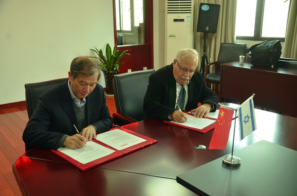會后,雙方共同簽訂友好協議。西蒙·格普斯坦隨后為生物工程系師生做了題為“以色列創新在解決全球糧食、水和能源危機中的作用”的精彩報告。