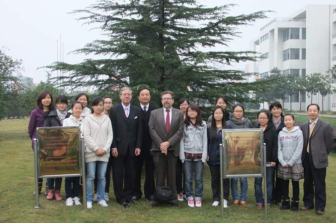 在伍爾夫總統種植的友誼樹前和我院部分師生合影留念