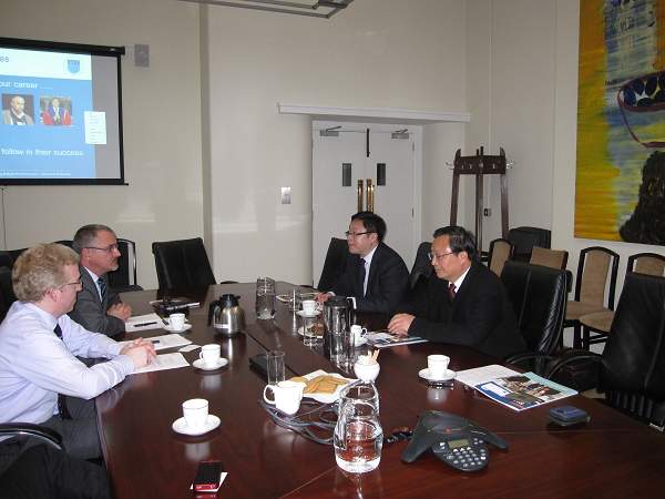 在愛爾蘭都伯林理工大學,陶登松一行與該校國際合作交流中心主任羅伯特先生及旅游管理學院院長多米尼克博士舉行了會談。羅伯特先生首先介紹了該校基本情況;接著多米尼克院長回顧了去年7月訪問安徽、合肥并和我院旅游系簽署旅游管理合作備忘錄的情形,介紹了旅游管理學院的歷史和現狀。都伯林理工大學成立于1887年,現有學生21000多人,是愛爾蘭的重點高校,實施多學科、多層次的高等教育,提供國際承認的本科學位和研究生學位課程,現有85個國家的學生在該校就讀(來自中國的留學生170多人),畢業生就業率在愛爾蘭高校中位于前列,曾有4名畢業生獲得諾貝爾獎。在聽完介紹后,陶登松介紹了合肥學院的基本情況和辦學特色,談了加強合作的意見和建議。都伯林理工大學對我院的辦學成效表示贊賞,并對我院與德國、韓國開展的各種形式的聯合培養模式表示出了濃厚的興趣,希望與我院開展學生交換等形式的合作,為我院旅游、經濟、管理、英語、藝術等專業學生赴該校進行本科及碩士學習提供機會,并希望在合肥學院設立愛爾蘭中心。通過洽談,雙方就深化交流合作達成一致意見,決定進一步磋商具體合作事宜,簽訂正式合作協議,開展“2+2”本科、“2+3”碩士學位國際教育合作交流和教師學習交流工作。