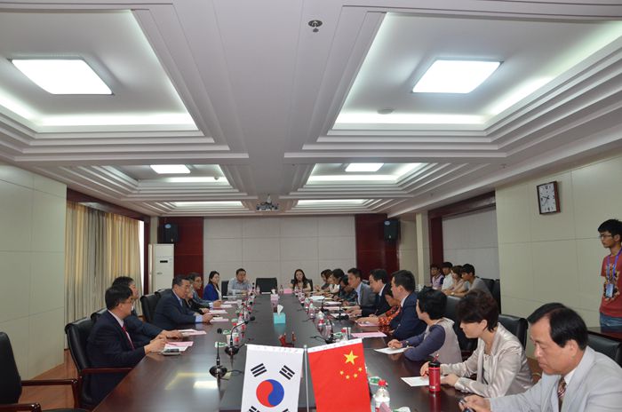 蔡敬民致歡迎詞,韓瑞大學(xué)與我院交流密切,是我院第一所友好合作的韓國大學(xué),至今,韓瑞大學(xué)與我校合作已有15年的歷史,我院先后派遣6名教師到韓瑞大學(xué)任教、5名教師赴韓瑞大學(xué)攻讀博士學(xué)位。韓瑞大學(xué)與我院派出的交換生、聯(lián)合培養(yǎng)學(xué)生已達到150名,韓瑞大學(xué)在我院學(xué)習(xí)漢語的學(xué)生超過100名,目前,有16位韓瑞大學(xué)交換生在我院學(xué)習(xí)漢語。蔡敬民還向客人介紹了我院辦學(xué)情況。