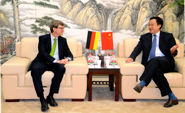 8月11日,德國駐上海總領館副總領事馬丁?圖默爾先生來訪我院。院黨委書記蔡敬民在行政樓八樓貴賓室熱情接待了來賓。蔡敬民從“合作起源、高層訪問、師生交流、合作成果”等方面對我院中德合作交流情況作了詳細的介紹。院外事處處長吳克等陪同會談。