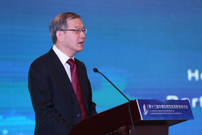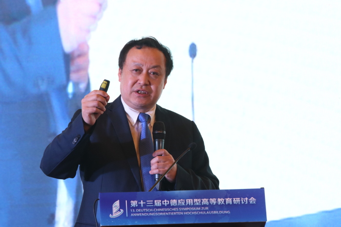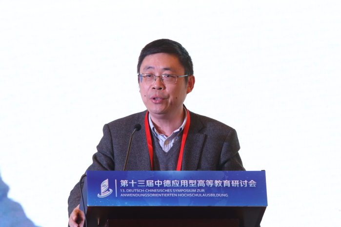 開幕式后,在大會主旨報告環節,五位專家結合自身研究領域分享了對應用型高等教育的思考。德國馬格德保應用科學大學副校長丁永健圍繞“新形勢下中德高校合作前景以及德國應用科學大學的角色”展開介紹。他表示,國際關系在很大程度上取決于經濟合作,中德雙方在經濟領域具有多方面、多領域的合作,這也為中德高校教育合作提供了堅實的基礎。在未來,中德高校間的合作交流會持續進行、不斷深化,共同推動中德教育的發展進步、合作共贏。