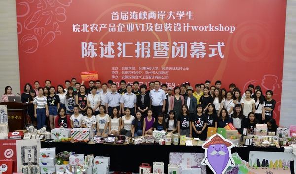 7月17日,在安徽省人民政府臺灣事務(wù)辦公室、合肥市人民政府、合肥市人民政府臺灣事務(wù)辦公室、宿州市人民政府、宿州市農(nóng)業(yè)委員會的大力支持下,由合肥學(xué)院、臺灣銘傳大學(xué)、臺灣云林科技大學(xué)共同主辦,合肥市人民政府臺灣事務(wù)辦公室、宿州市人民政府協(xié)辦,安徽深裝合大工業(yè)設(shè)計有限公司承辦的“首屆海峽兩岸皖北農(nóng)產(chǎn)品企業(yè)VI及包裝設(shè)計workshop”項目,在兩岸80余名師生的共同努力下,在合肥學(xué)院圖書館學(xué)術(shù)報告廳圓滿落幕。安徽省臺辦副主任汪泗淇,合肥市委副書記、“紀念劉銘傳首任臺灣巡撫130周年”系列活動合肥市籌備領(lǐng)導(dǎo)小組組長凌云,合肥學(xué)院黨委書記蔡敬民,校長張文兵,黨委副書記丁明,合肥市委副秘書長毛萬里,安徽省臺辦交流聯(lián)絡(luò)處副調(diào)研員邵琳,安徽省教育廳外事處副調(diào)研員孔德俊,宿州市農(nóng)委副主任段梅英,合肥市臺辦副主任胡衛(wèi)平,宿州市農(nóng)委產(chǎn)業(yè)辦主任周澍,臺灣銘傳大學(xué)教授林建華、方菁容等出席。陳述匯報暨閉幕式由合肥學(xué)院副校長劉建中主持。