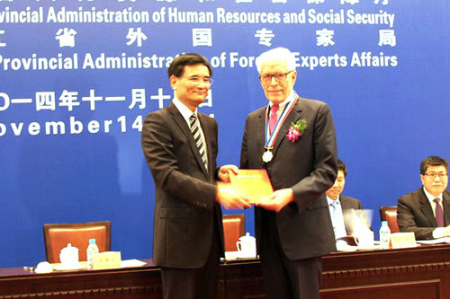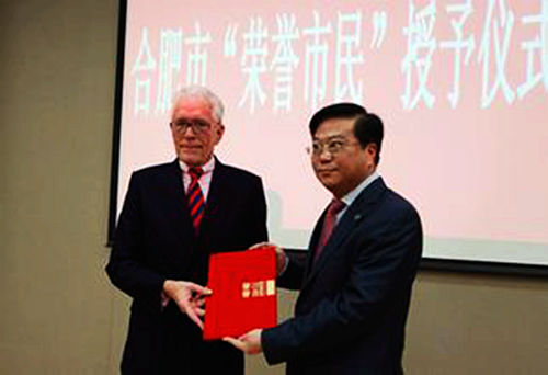 奚偉德教授長(zhǎng)期從事對(duì)華工作,與合肥結(jié)緣更久,他先后在合肥成立兩家建筑材料企業(yè),并一直熱心致力于安徽省、合肥市和合肥學(xué)院對(duì)德經(jīng)濟(jì)文化交流工作,為省、市、校的建設(shè)做出了顯著成績(jī)。曾獲德國(guó)灰漿工業(yè)聯(lián)合會(huì)商務(wù)顧問(wèn)勛章、德意志聯(lián)邦共和國(guó)十字勛章、波蘭建筑部榮譽(yù)勛章。2009年獲黃山友誼獎(jiǎng)、2011年獲合肥市對(duì)外友好協(xié)會(huì)名譽(yù)會(huì)員、2013年獲合肥市榮譽(yù)市民,2014年浙江省西湖友誼獎(jiǎng)。