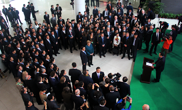 默克爾表示,我在這里親身感受到中國青年學子的熱情、勤奮和努力,對德中青年交流、教育合作的未來更加充滿信心。德方愿積極推動更多地方教育部門來華開展合作,鼓勵德國企業參與和支持,讓德中合作更加興旺。