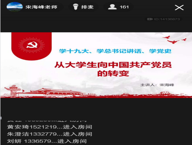 為了加強(qiáng)對入黨積極分子的教育培訓(xùn),進(jìn)一步提高入黨積極分子黨的基礎(chǔ)理論素養(yǎng),2021年10月20日,經(jīng)濟(jì)與管理學(xué)院全體入黨積極分子在線上群課堂開展了第四次黨校培訓(xùn)課程——《從大學(xué)生向中國共產(chǎn)黨員的轉(zhuǎn)化》。合肥學(xué)院紀(jì)委副書記宋海峰老師受邀擔(dān)任主講。