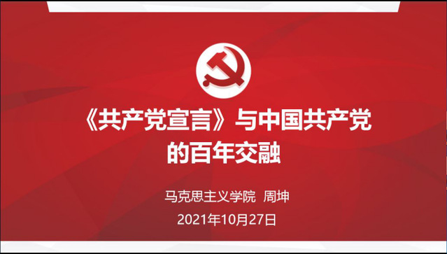 10月27日,經(jīng)濟與管理學(xué)院第五期全體入黨積極分子通過線上方式參與第七課《共產(chǎn)黨宣言與中國共產(chǎn)黨的百年交融》的學(xué)習(xí)。本次黨課由馬克思主義學(xué)院周坤老師主講。