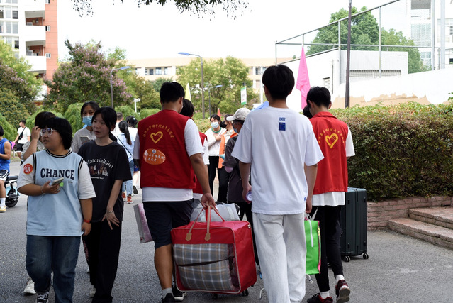 早上六點半,伴隨著清晨的陽光,數(shù)百名志愿者在香怡門口整隊并整理迎新所需物資。經(jīng)管學(xué)院黨委書記倪澤強、黨委副書記夏丹青帶領(lǐng)全體新生輔導(dǎo)員在香怡社區(qū)南門迎接新生的到來。新生按照不同班級分流報道,工作有條不紊、現(xiàn)場井然有序。學(xué)生志愿者們統(tǒng)一著裝,佩戴證件,幫助新生核驗身份、辦理入學(xué)、搬運行李,細(xì)致熱情地做好服務(wù)工作。經(jīng)管學(xué)院院長陳江華、副院長于娜等領(lǐng)導(dǎo)在迎新現(xiàn)場與師生親切交談,對奮戰(zhàn)在迎新一線的師生的辛勤付出給予充分肯定。