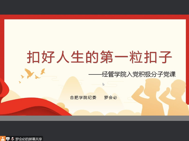 為教育引導入黨積極分子形成正確的價值觀,堅定理想信念,2022年12月6日,經濟與管理學院第七期入黨積極分子培訓班線上第五課《扣好人生的第一粒扣子》順利開講。本次黨課由合肥學院紀委副書記羅會必主講。