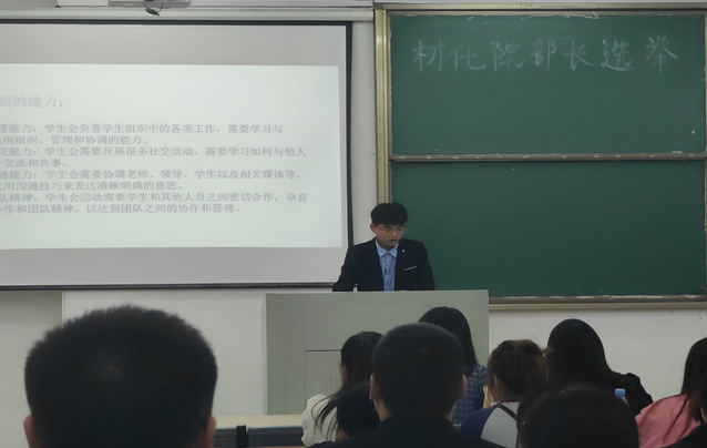 6月11日晚6點半,能源材料與化工學(xué)院學(xué)生會部長換屆大會在生化樓一階梯順利召開,出席本次會議的人有院學(xué)生主席團(tuán)成員以及數(shù)名競選同學(xué)。