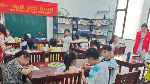 5月19日下午2點,由近春園居委會新時代文明實踐站舉辦的“神奇小實驗,科學大發現”青少年科普實驗活動在綠地濱湖國際花都小區正式召開,能源材料與化工學院“三葉草”志愿隊參與本次活動的志愿服務。