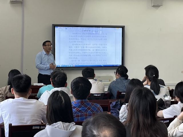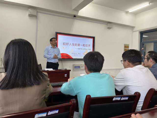2023年5月23日,城市建設與交通學院第七期入黨積極分子培訓班第五講《扣好人生的第一??圩印讽樌_展。此次黨課由合肥學院紀委副書記羅會必主講,城建學院黨委副書記高喬楠主持。