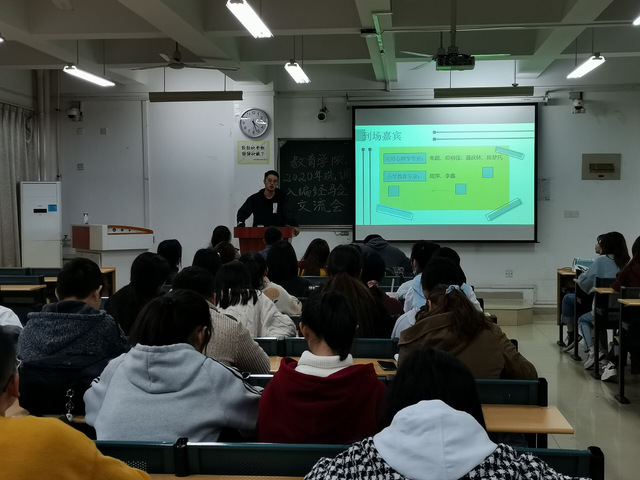 群賢畢集,面對面交流,心與心的溝通。思想的碰撞,靈魂的升華。學長,學姐們用自己的親身經歷去幫助和指導大四學生。聽完本次交流會后,相信同學們在今后備考的道路上,一定能披荊斬棘,大展鴻鵠,走向成功。  (教育學院記者團王蘇尉 朱海文 任心怡)