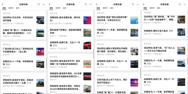 在工作前期階段,兩位同學(xué)主要負(fù)責(zé)運營安徽車展公眾號。每天的主要任務(wù)便是完成既定日常專題的公眾號稿件。此外如有車展同期活動主辦方發(fā)來宣傳文案,也需要進(jìn)行活動稿件的撰寫,累計撰寫公眾號宣傳文案達(dá)六十余篇。在此期間,兩位同學(xué)也深入接觸到與各類活動負(fù)責(zé)人溝通交流的機會,并表示活動對接時需要極大耐心,謹(jǐn)小慎微,反復(fù)確認(rèn),不能忽略掉一個細(xì)枝末節(jié),因而也不斷提高了自己的語言組織與表達(dá)能力。