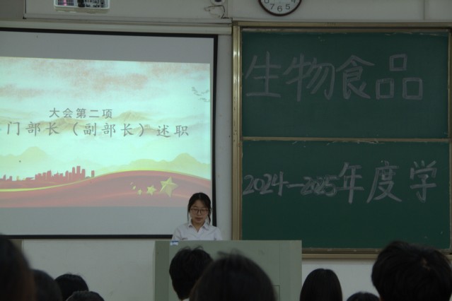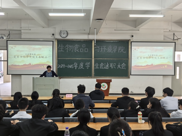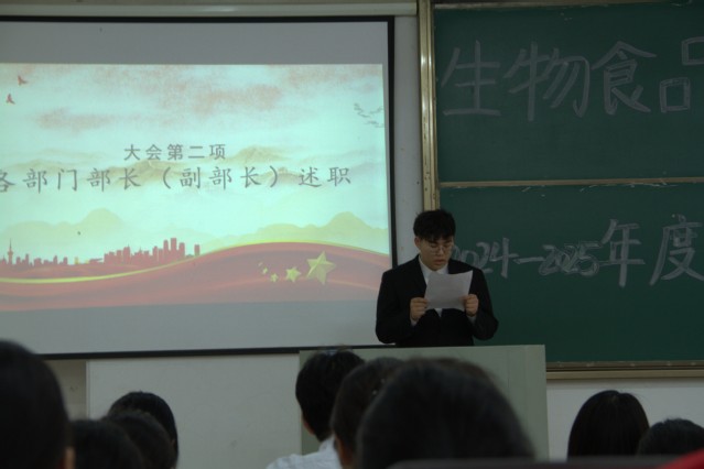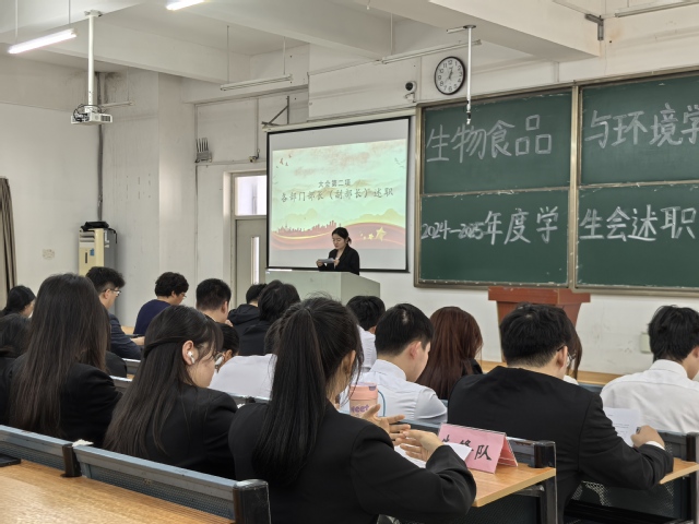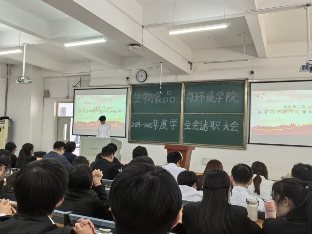 2025年4月23日12點30分,生物食品環境學院2024-2025年度學生會述職大會于生化樓一階梯教室順利召開,生物食品與環境學院黨委書記李秀娟,院團委負責人楊林以及全體學生會成員參與。