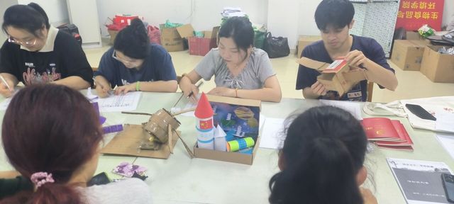 本次活動選手以團隊形式參加比賽,每支隊伍由1-3人組成。要求以“兩彈一星”為主題、“人造衛(wèi)星”為模板,使用廢棄塑料瓶、膠水等環(huán)保材料制作手工模型。共有5支隊伍報名參加,最終收到了4組作品。每個作品由評委統(tǒng)一打分排名,集中討論之后,選出一等獎1個、二等獎2個、三等獎1個,按獎項不同提供相應志愿時長,并將作品送至校外社區(qū)進行展示。