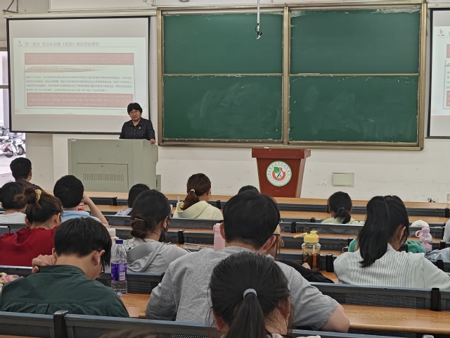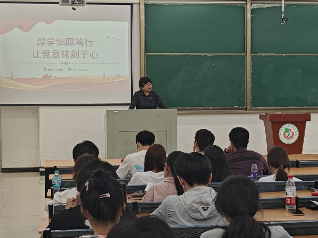 5月13日中午十二點(diǎn)半,生物食品與環(huán)境學(xué)院在生化樓一階梯教室開展以“深學(xué)細(xì)照篤行,讓黨章銘刻于心”為主題的入黨積極分子第二次培訓(xùn)課程。此次培訓(xùn)班教學(xué)由生物食品與環(huán)境學(xué)院黨委書記李秀娟主講,全體入黨積極分子參加。