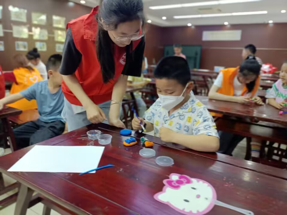 黨員用超輕粘土作為刻字所使用的模具,帶領小朋友們現場雕刻了“五、四、青、年、愛、國”等字樣,充滿了對祖國母親的敬愛之情。通過這一環節,不僅鍛煉了小朋友們的思考能力和動手能力,更是讓孩子們深刻地體會到了當今的幸福與和平來之不易,大家紛紛表示今后會更加努力的學習,長大后報效祖國,積極投入到祖國的偉大建設中去。