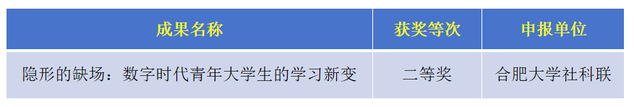 結合數字時代的轉型背景,論文重點以青年大學生學習為研究對象,通過采用質化研究路徑,對數字時代引起的青年大學生學習中的場域轉化、交往變化、生活世界的具體表現等展開探討。 “三項課題”研究活動由省社科聯組織,旨在堅持守正創新與問題導向,聚焦現代化美好安徽建設開展理論與應用研究。2024年度評選,全省共216項研究成果獲獎,其中一等獎44項,二等獎132項,三等獎40項。(文:陶德強) |