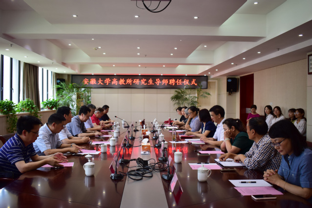 6月4日上午,安徽大學高教所研究生導師聘任儀式在我校行政樓9樓西會議室舉行。安徽大學黨委書記蔡敬民、副校長錢家盛、研究生院常務副院長吳成頌、高等教育研究所所長張晶及高教所師生代表一行13人赴我校參加儀式。合肥學院校長吳春梅、副校長盧平、研究生處處長葛春梅、教育學院院長江芳到會。